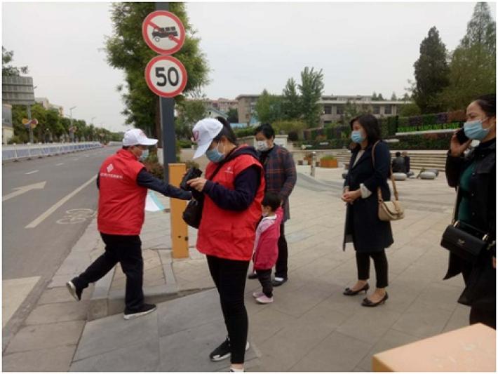 中午交通高峰时段,在杨陵区好又多十字路口,健康教育志愿者身着红马甲,协助交警维持交通秩序。活动现场,工作人员对不按照信号灯通行的行人进行劝导,并发放安全通行宣传页,引导行人自觉遵守交通规则,按照交通信号通行,提高行人安全意识。