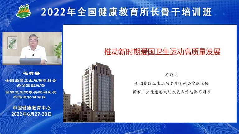 为加强全国健康教育人才队伍能力建设,为实施健康中国战略做好技术支撑,2022年6月27—30日,中国健康教育中心(以下简称“中心”)采用线上线下相结合的方式,举办2022年全国健康教育所长骨干培训班,来自全国31个省(自治区、直辖市)和新疆生产建设兵团的800余名省级健康教育所长和业务技术骨干参加培训。