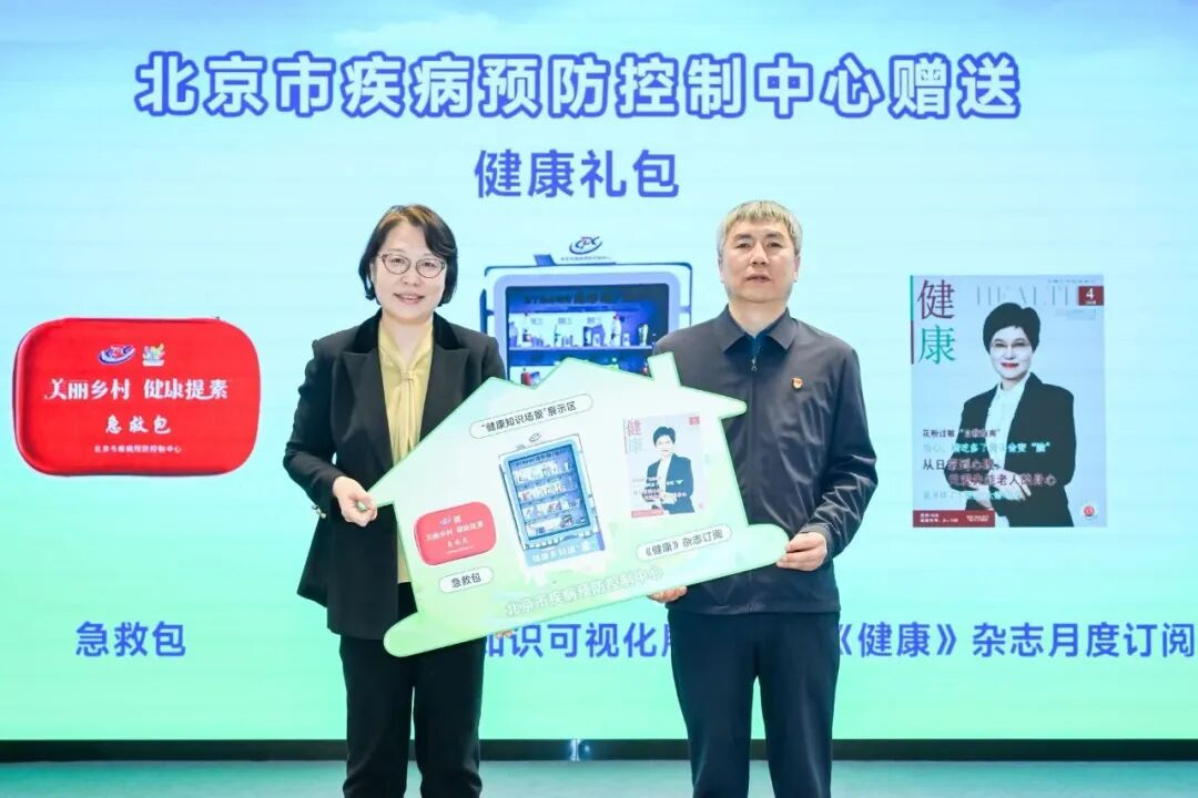 北京市疾控中心、门头沟区卫健委、安利(中国)日用品有限公司分别向门头沟龙泉镇的村民们赠送可视化健康知识展架、医学血压计、运动用品及医疗自测仪等健康工具包,助力农村健康服务阵地建设。