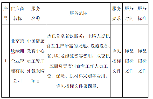 中国健康教育中心员工餐厅外包采购项目中标公告