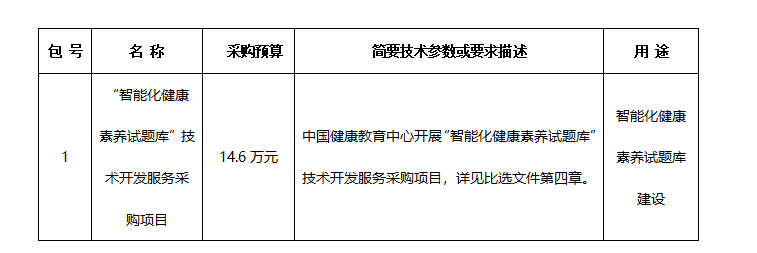 一、项目名称:“智能化健康素养试题库”技术开发服务采购项目。