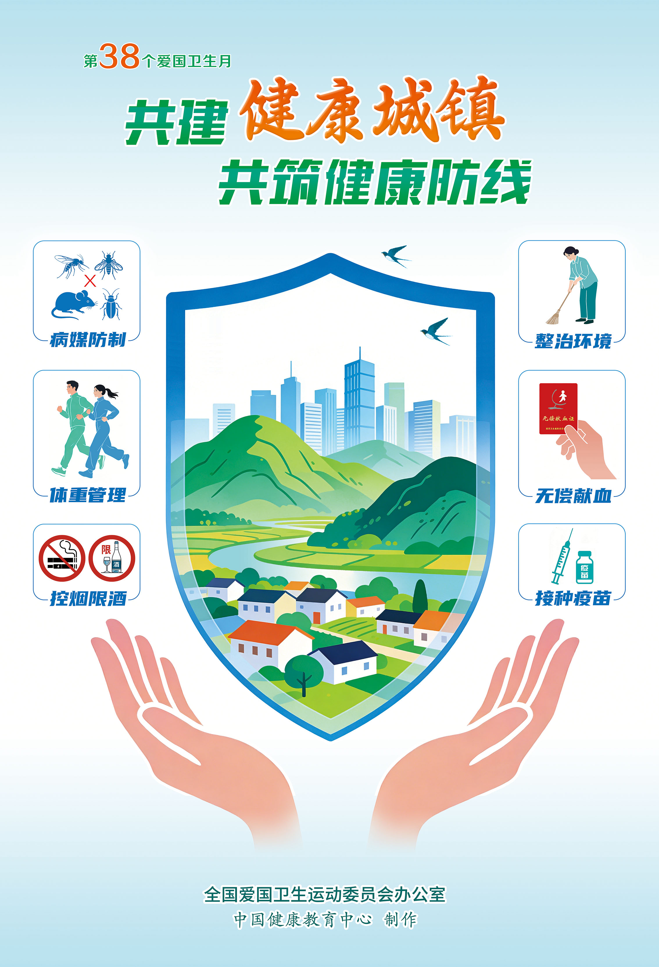 共建健康城镇共筑健康防线 | 全国第38个爱国卫生月宣传海报发布