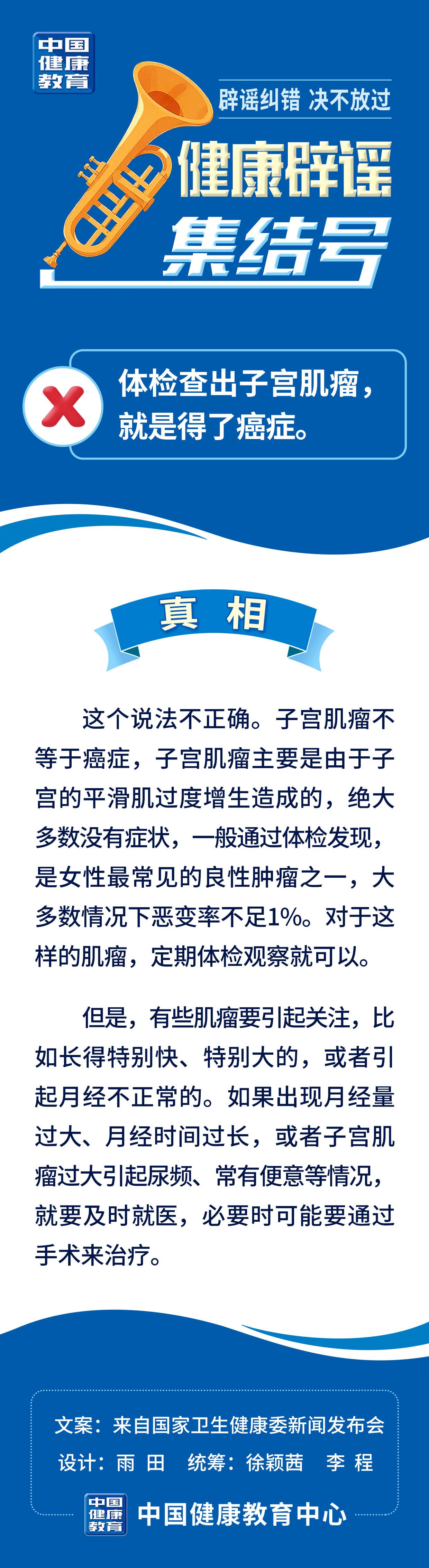 体检查出子宫肌瘤,就是得了癌症丨健康辟谣集结号
