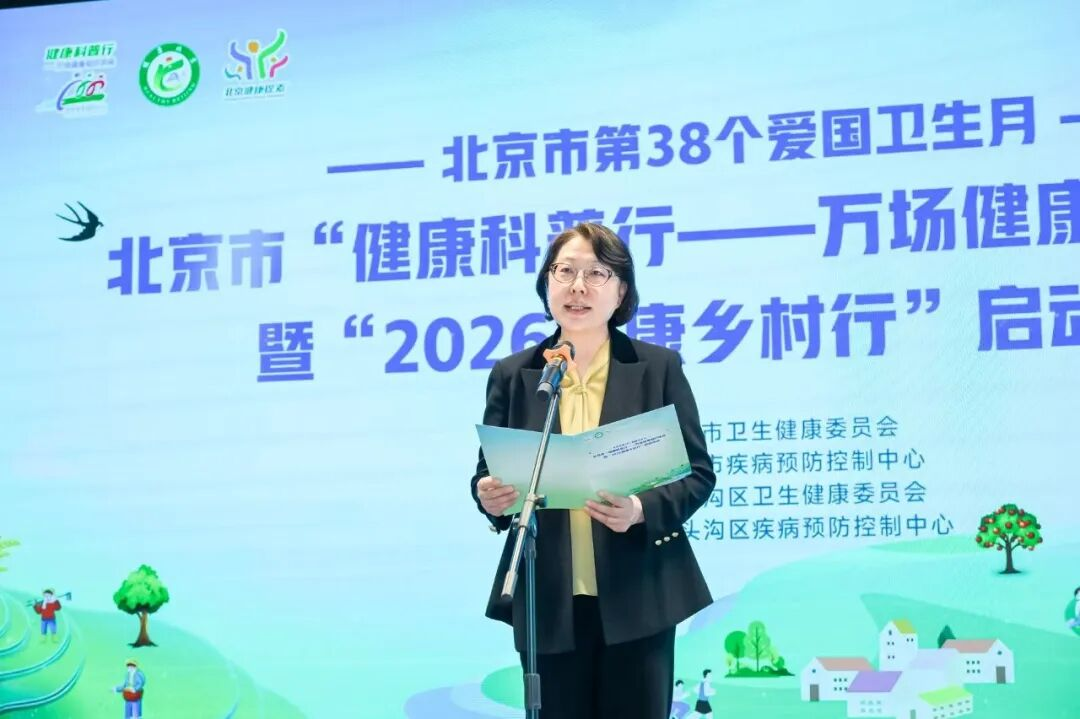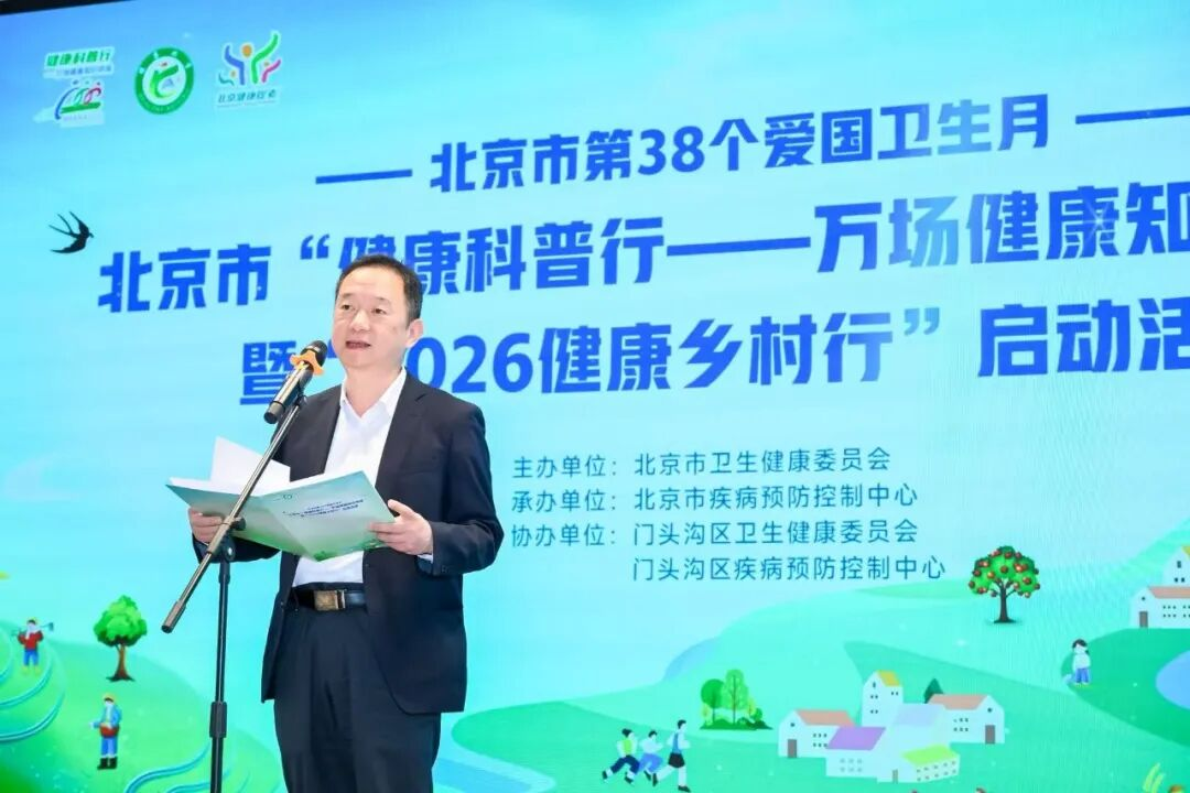 2026年4月15日,正值全国第38个爱国卫生宣传月,北京市“健康科普行—万场健康知识讲座”暨“2026健康乡村行”启动活动在门头沟区龙泉镇琉璃渠村举办。中国健康教育中心主任、党委副书记吴敬、北京市卫生健康委一级巡视员郑晋普、门头沟区政府副区长冯涛、北京市疾控中心党委书记宋卫萍等相关领导参加活动。